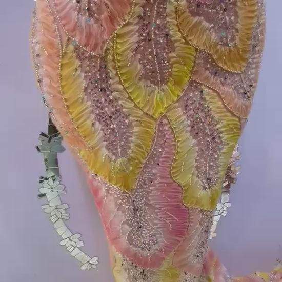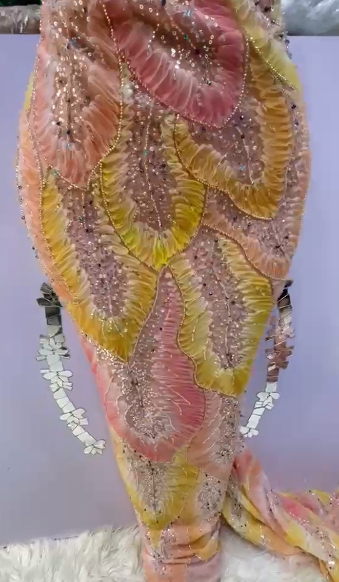 Perfect for custom outfits and your red carpet moments, this hand-beaded beauty offers both luxury and drama. The dense embellishments create a glamorous silhouette, while the slight stretch allows for movement and comfort.