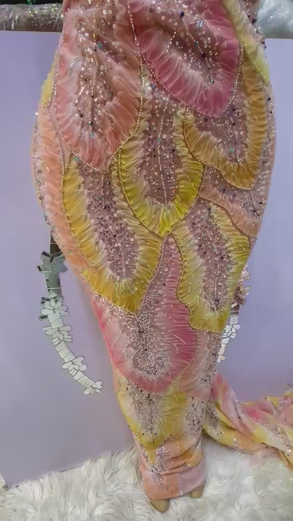 Ruffle Beaded Lace Fabric- Multi (5 Yards)
